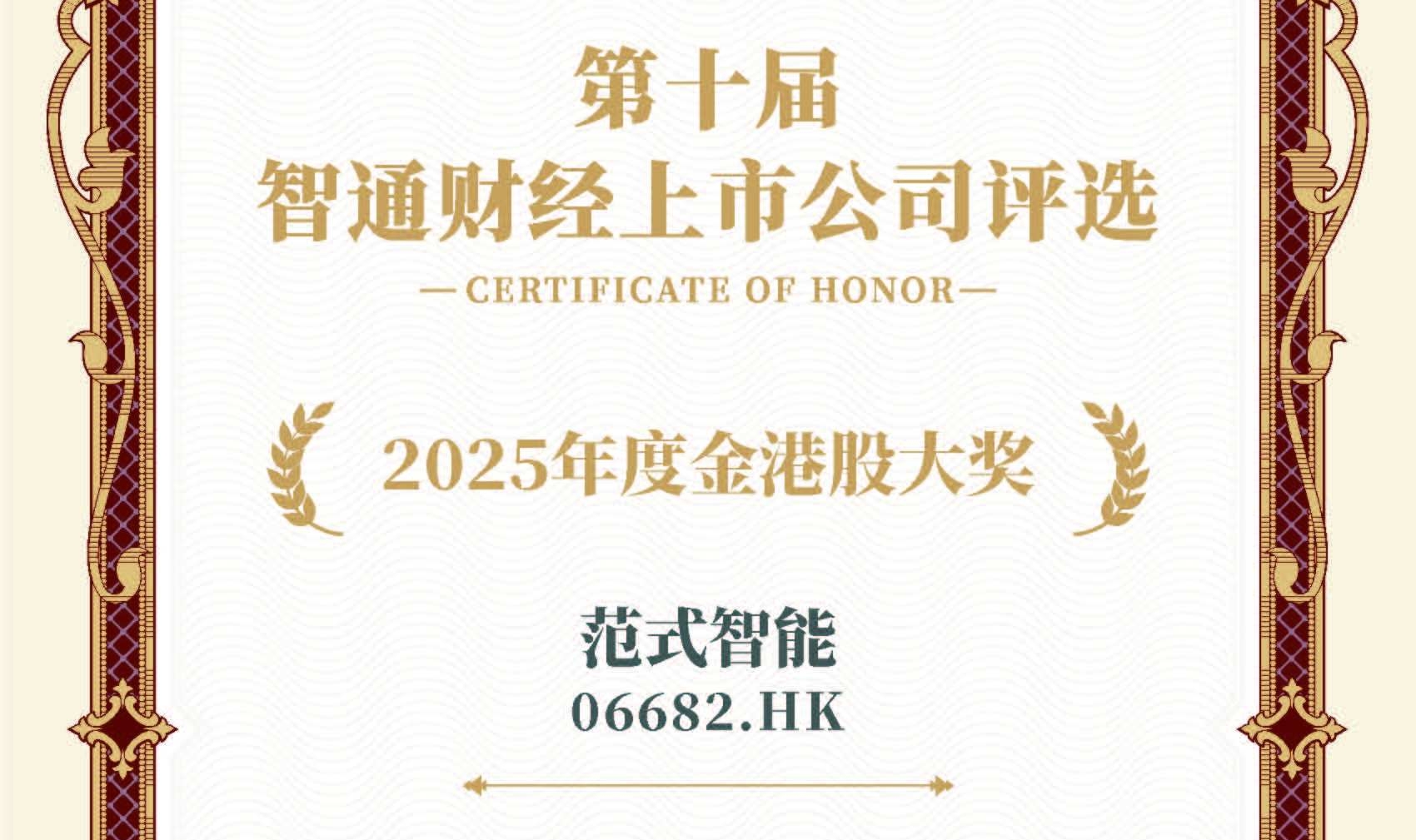 12月3日,在第十届智通财经上市公司颁奖盛典上,范式智能凭借卓越的经营表现、可持续的发展潜力及突出的综合实力,成功摘得“2025年度金港股大奖”,集团CFO刘楠获得“最佳CFO奖”。同期获得“金港股大奖”的有联想集团、百济神州、中信股份等各领域知名企业。