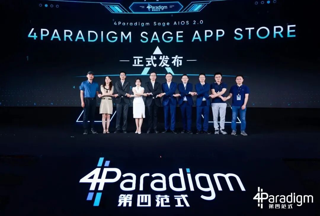 传统行业也有先行者。发布会现场,百胜中国分享其通过AI技术赋能关键业务线上化场景、实现质变的经验。百胜中国IT资深总监孙磊表示,在百胜中国,很多领域已经发生了质变:比如外卖餐点派送从原来每个餐厅专人来分配配送,现在都是AI系统在做订单分发,且配送效率高;再如每家餐厅的外送商圈从专人维护,到智能商圈系统的AI自动规划,保障了全局效率最优。AI帮助着百胜各个业务领域包括线上、线下、供应链、食品安全、客服、培训等提升,最终会覆盖全价值链,覆盖公司的所有业务范畴,帮助公司提升消费者体验,公司营运效率和服务质量,同时降低成本。第四范式与永辉彩食鲜的合作同样是基于其战略目标的关键业务场景,如智能定价中台、AI采购员。在永辉彩食鲜CTO乔新亮看来,在AI决策的协助下,人效获得极大提升,突破临界点后,1个采购员可以完成100个采购员的工作,3000人变成能做100倍的生意,最终企业增长不再受制于人力与成本。而当AI在关键场景验证成功后,就能逐步拓展到所有业务领域,最终实现企业经营的质变。第四范式一直致力于利用AI技术、产品及服务,帮助企业在智能化转型中实现质变。企业转型过程中所需的能力众多,为了让 AI 在企业智能化进程中发挥价值,必须具备集应用、数据、算力为一体的能力模型。在发布会上,第四范式全新发布了企业级AI操作系统4Paradigm Sage AIOS 2.0及企业级智能应用市场4Paradigm Sage App Store,联接打通了应用、数据、算力三者间的屏障,此外,为了支撑企业全面的智能化转型,以Sage AIOS App Store平台为基础,扩展为应用联邦、数据联邦、算力联邦三大网络。在注入更多生态力量之外,第四范式也面向开发者社区开源AIOS底层的技术能力。发布会上,第四范式宣布将开源OpenMLDB机器学习数据库和OpenAIOS人工智能操作系统内核,并开放上线了基于机器学习数据库和AI操作系统内核的AIOS社区版,让更多企业、个人开发者在“避坑”的同时,能够正确高效的构建智能化应用。未来,第四范式将继续做好应用、数据和算力之间的联接,做好企业与合作伙伴、企业与开发者社区之间的桥梁,聚力支撑企业的智能化转型,最终实现企业质变的新范式。